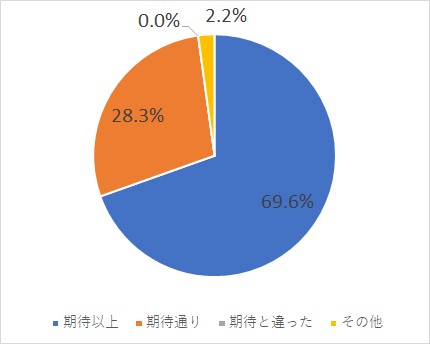 結果は約7割の方から「期待以上」という良い評価を頂きました。